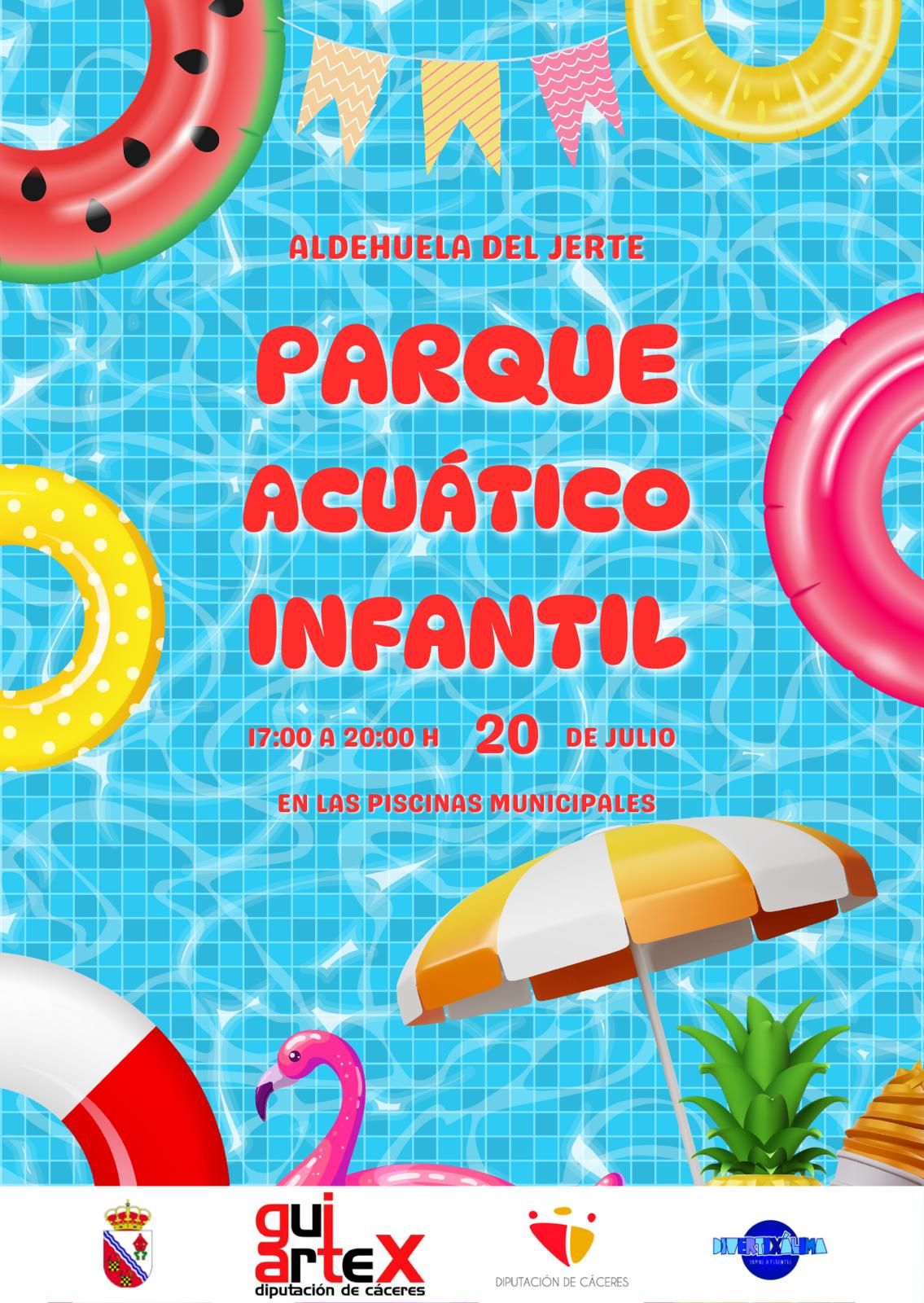Parque Acuático Infantil. 18 julio 2025 Domingo 20 de julio , en la piscina municipal de Aldehuela del Jerte, Parque Acuático para todos los usuarios de la piscins....ven y pásalo genial!!! Os esperamos.