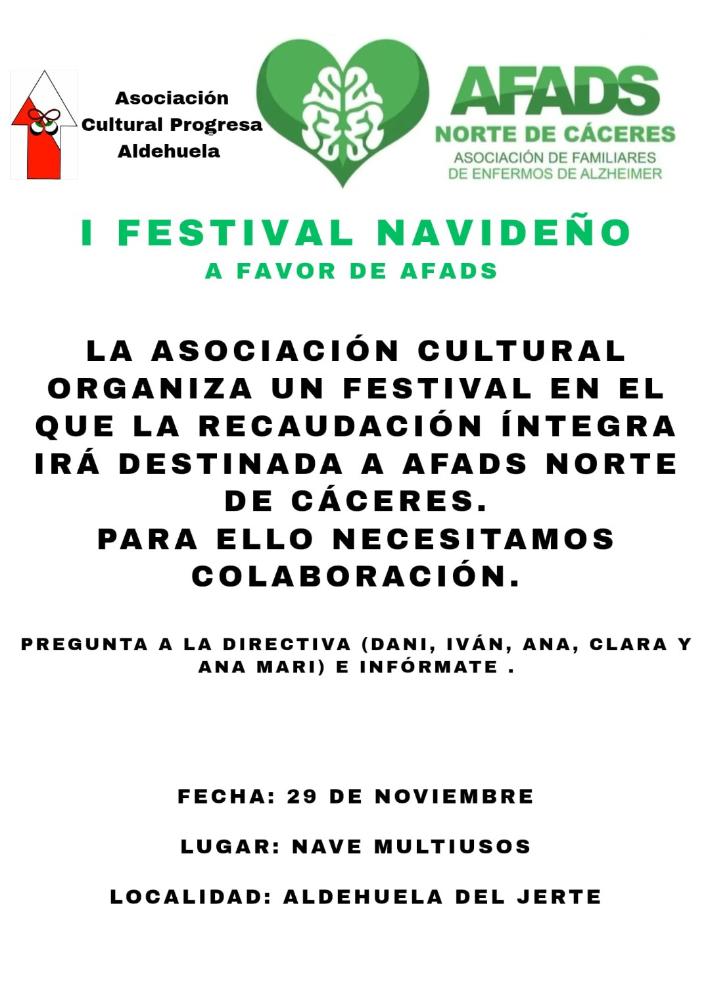 I FESTIVAL NAVIDEÑO A FAVOR DE AFADS 02 octubre 2025 APUNTAR ESTA FECHA, SÁBADO 29 DE NOVIEMBRE. I FESTIVAL NAVIDEÑO A FAVOR DE AFADS. ¡OS IREMOS INFORMANDO! Afads Plasencia Galería imágenes